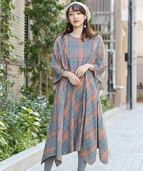 ◆商品について◆ 優しい色合いのチェックが大人かわいい、ワンピース。