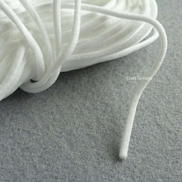 [マスク用ゴム 2.5mm] 10mカット マスクゴム 手作りマスク 白 手芸用品 素材 アクセサリー パーツ 丸 紐 ひも ゴム ゴムひも ゴム紐 ゴムコード マスク ハンドメイド 手芸 手作り カット 柔らか ソフト 痛くない