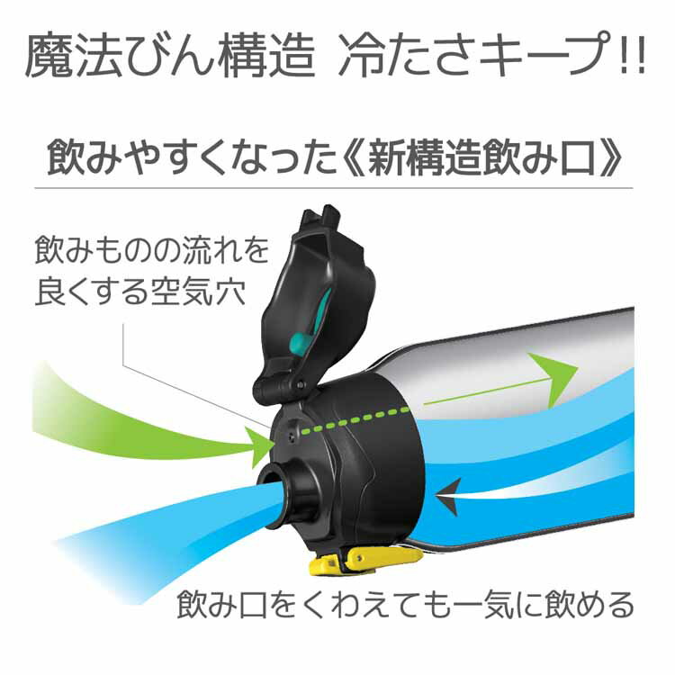 飲みやすくなった新機構飲み口!空気穴を設けたので、飲み口がふさがれた状態でもゴクゴク飲めます!ポーチのストラップは肩にやさしい幅広タイプで長さの調整がしやすいアジャスターが2個付いています。